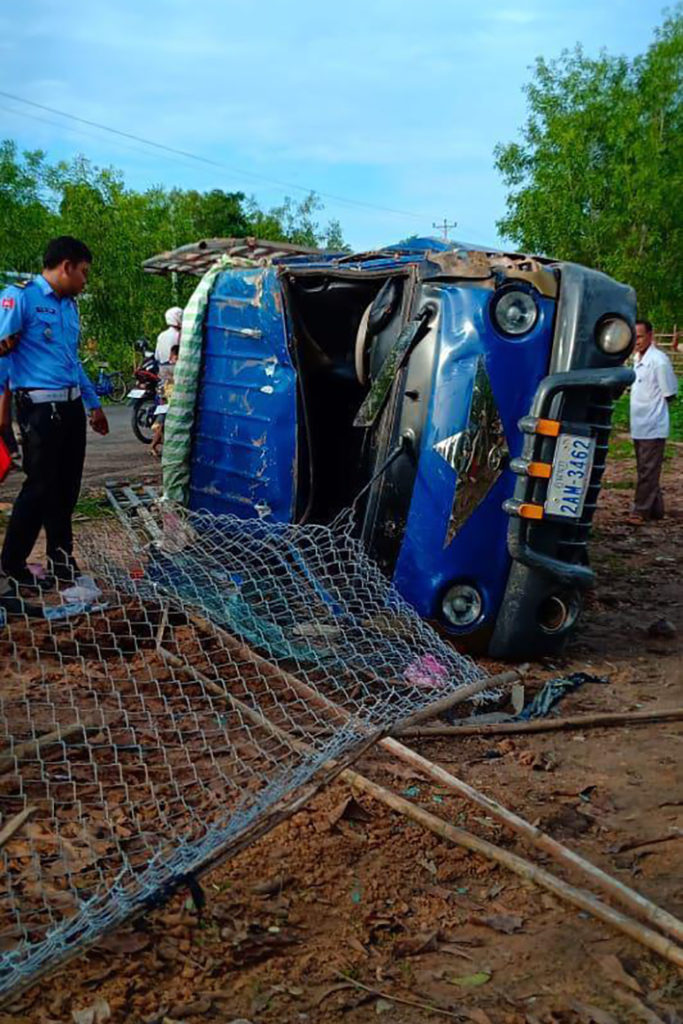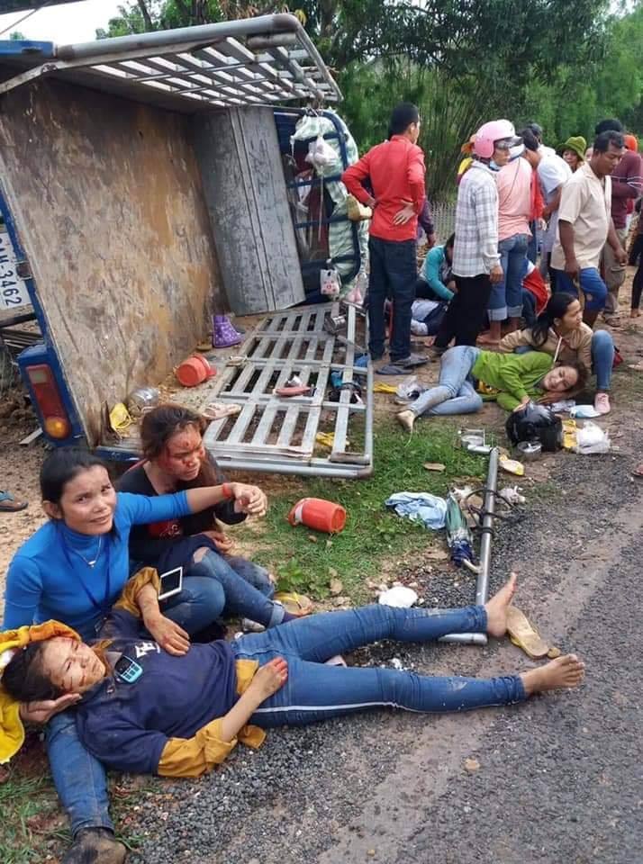 ខេត្តស្វាយរៀង ៖ យុវជនម្នាក់ទើបនឹងរៀនបើករថយន្តបានចំនួន២ថ្ងៃ ក៏ឡើងកាន់ដៃចង្កូតបើករថយន្តដឹកកម្មករកម្មការិនីរោងចក្ររាប់សិបនាក់ លុះដោយសារតែចេះស្ទើរភ្លើងផង ខ្វះការប្រុងប្រយ័ត្នទើបបង្កឱ្យមានគ្រោះថ្នាក់រេចង្កូតក្រឡាប់ដោយខ្លួនឯង បណ្តាលឱ្យមនុស្សប្រុសស្រីចំនួន២នាក់បានស្លាប់យ៉ាងអាណោចអាធ័ម ចំណែកជាង៤០នាក់ទៀតទទួលរងរបួសធ្ងន់ស្រាល។