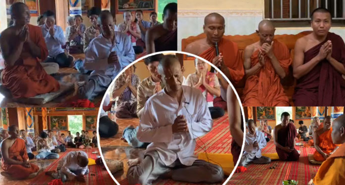 ការលាចាកសិក្ខាបទរបស់ព្រះតេជគុណតាក់ស៊ី គឺនៅចំពោះមុខព្រះមេគុណខេត្តកំពង់ស្ពឺ និងព្រះសង្ឃ ព្រមទាំងពុទ្ធបរិស័ទជាច្រើននាក់ទៀតផង។