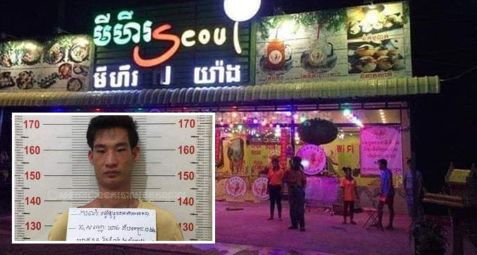 តាមប្រភពពីកន្លែងកើតហេតុបានឱ្យដឹងថា កន្លងមកជនសង្ស័យគឺជាបុគ្គលិកធ្វើការក្នុងហាងលក់មីហឹរ Seoul ស្ថិតក្នុងភូមិឃុំកើតហេតុខាងលើ ក្រោយមកត្រូវបានជនរងគ្រោះជាម្ចាស់ហាងបានបញ្ឈប់ជនសង្ស័យពីការងារ។ លុះនៅថ្ងៃទី០១ ខែសីហា ឆ្នាំ២០១៩ វេលាម៉ោង៨និង៣០នាទី ស្រាប់តែជនសង្ស័យឈ្មោះឃាង គីមពេជ្រ បានទៅក្នុងហាងខាងលើ ដោយបានវាយបំផ្លាញតុនិងជញ្ជាំងហាង ព្រមទាំងគំរាម ងិយកដបសាំងទៅបម្រុងដុតហាងទៀតផង ដោយសារតែខឹងនឹងថៅកែបញ្ឈប់ពីការងារ ហើយពុំព្រមទទួលឱ្យចូលធ្វើការវិញ តែពុំបានដុតហាងទេ ក៏បោះដបសាំងចោលក្បែរនោះទៅ រួចត្រូវបានម្ចាស់ហាងធ្វើដំណើរពីភ្នំពេញមកទាំងយប់ រួចរកឃើញដបសាំងនោះប្រគល់ជូននគរបាល។