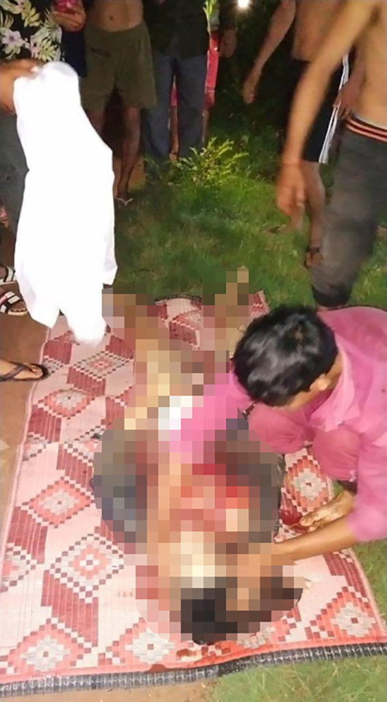 ប្រភពដដែលបានបន្តថា លុះនៅមុនពេលកើតហេតុ កាលពីវេលាម៉ោង៧និង៣០នាទីយប់ ថ្ងៃទី០៥ ខែសីហា ឆ្នាំ២០១៩ ស្ត្រីរងគ្រោះទើបតែមកពីទិញបង្អែមនៅចំណុចផ្លូវលំច្រកចូលផ្ទះ ស្រាប់តែបុរសជាប្តីដែលបានលាក់ខ្លួន ចេញមកដោយដៃមានកាន់កាំបិតផ្គាក់ផងនោះ បានកាប់ទៅលើប្រពន្ធជាច្រើនកាំបិត ចំបំពង់កនិងកញ្ចឹងកស្លាប់ រួចហើយប្តីកំណាចរូបនេះបានទាញសពប្រពន្ធទម្លាក់ចូលប្រឡាយទឹកលូតែម្តង ហើយបានរត់គេចខ្លួនបាត់ស្រមោល។