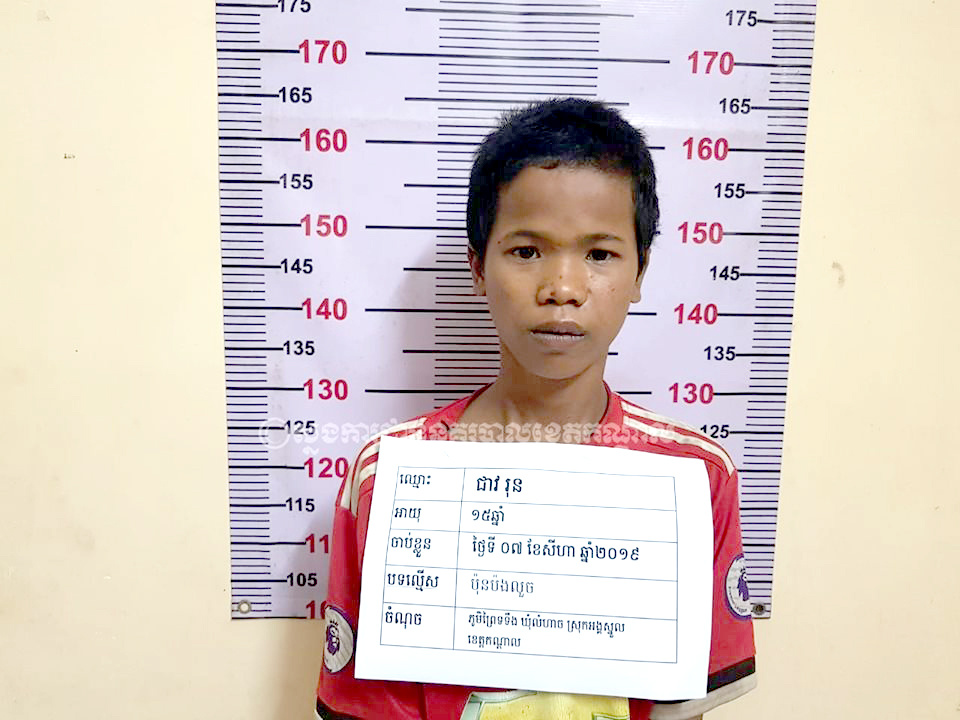ខេត្តកណ្តាល៖ បុរសម្នាក់កំពុងតែដេកលក់ស្កប់ស្កល់ ស្រាប់តែក្រោកពីដំណេកទាំងពាក់កណ្តាលយប់ ក៏បានឃើញក្មេងប្រុសម្នាក់នៅក្រោមគ្រែ មិនដឹងថាចូលមកតាំងពីពេលណា មានបំណងចង់លួចម៉ូតូ ក៏បានចាប់ខ្លួនប្រគល់ឲ្យប្រគល់ឲ្យសមត្ថកិច្ចចាប់ខ្លួនតែម្តង។