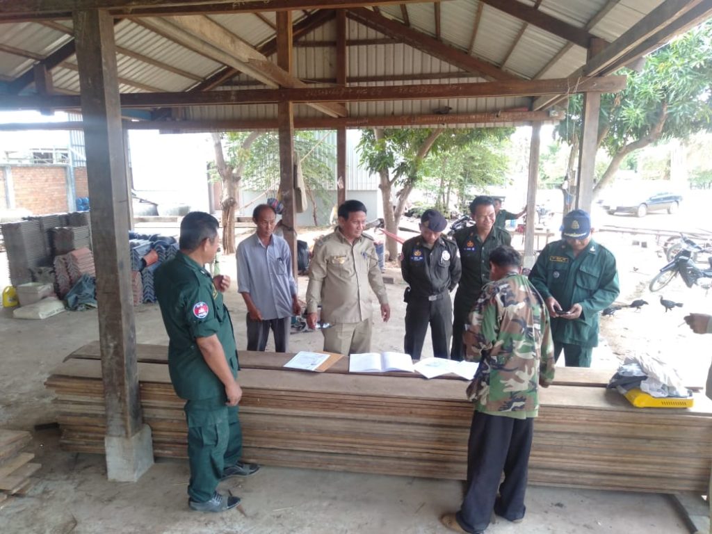 ខេត្តពោធិ៍សាត់ ៖ លោកអនុសេនីយ៍ឯក ម៉ាក់ មុត មេបញ្ជាការរងមូលដ្ឋានកងរាជអាវុធហត្ថស្រុកកណ្តៀង ដឹកនាំកម្លាំងចុះសហការត្រួតពិនិត្យកន្លែងលក់ទិញនិងកែច្នៃឈើ នៅក្នុងភូមិសាស្ត្ររដ្ឋបាលស្រុកចំនួន៧កន្លែង មានច្បាប់អនុញ្ញាតតែ១កន្លែងគត់។