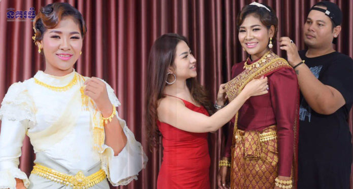 តារាចម្រៀងកម្សត់អតីតបេក្ខភាព X Factor Cambodia រដូវកាលទី១ លៀង ចាន់ឡា ស្រាប់តែលេខមុខក្នុងឈុតកូនក្រមុំយ៉ាងស្រស់ស្អាត ថតឃោសនាឲ្យសម្អាងការលី ច័ន្ទសីហា កាលពីពេលថ្មីៗនេះ។