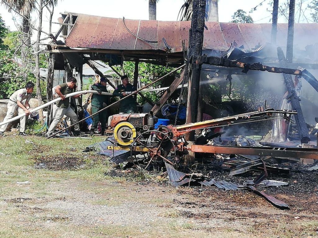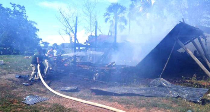 សមត្ថកិច្ចបានប្រាប់ថា លំនៅដ្ឋាននេះត្រួវភ្លើងឆេះអស់ទាំងស្រុងដែលគ្មានរថយន្តពន្លត់អគ្គិភ័យ ឬអ្នកភូមិជួយបាញ់ទឹកពន្លត់បានឡើយ៕