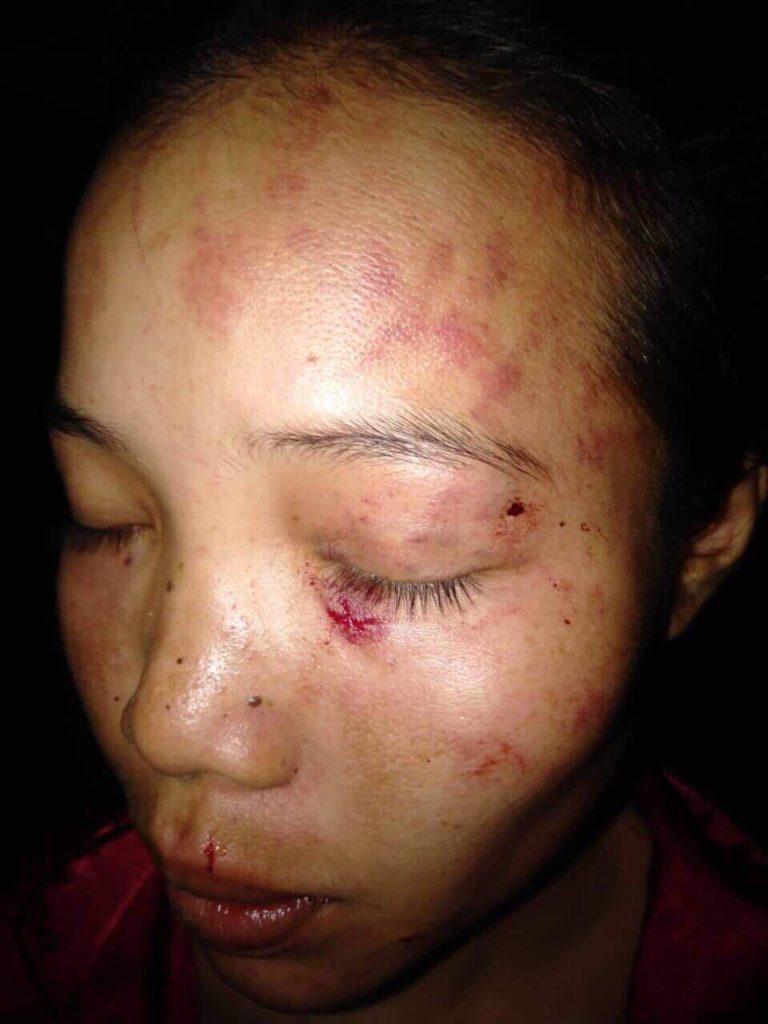 ចំណែកស្ត្រីរងគ្រោះ មានឈ្មោះសាន់ មុំ អាយុ២៧ឆ្នាំ មានលំនៅក្នុងភូមិសួនអំពៅលិច សង្កាត់ប៉ៃលិន ក្រុងប៉ៃលិន រងរបួសពេញផ្ទៃមុខនិងដងខ្លួន។