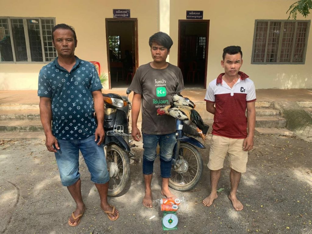 ប្រភពពីសមត្ថកិច្ចបានឱ្យដឹងថា អ្នកញៀនល្បែងដែលឃាត់ខ្លួន ទី១-មានឈ្មោះគង់ វៃ អាយុ៤០ឆ្នាំ មុខរបរមិនពិតប្រាកដ រស់នៅភូមិក្រាំងស្វាយ ឃុំរលាំងគ្រើល ស្រុកសំរោងទង ខេត្តកំពង់ស្ពឺ ទី២-មានឈ្មោះសាន ភារម្យ ភេទប្រុស អាយុ៣២ឆ្នាំ មុខរបរមិនពិតប្រាកដ នៅភូមិក្រាំងស្វាយ ឃុំរលាំងគ្រើល ស្រុកសំរោងទង ខេត្តកំពង់ស្ពឺ និងទី៣-មានឈ្មោះ ផល សំ ភេទប្រុស អាយុ២៧ឆ្នាំ មុខរបរមិនពិតប្រាកដ ស្នាក់នៅភូមិឧកញ៉ាទេព ឃុំត្រពាំងគង ស្រុកសំរោងទង ខេត្តកំពង់ស្ពឺ។ ក្រោយឃាត់ខ្លួន នគរបាលដកហូតបានមាន់១ក្បាល ជញ្ជីងសម្រាប់ថ្លឹង១ បង់រុំជើងមាន់១ដុំ និងម៉ូតូចំនួន២គ្រឿងផងដែរ។