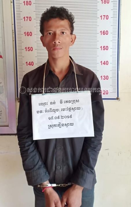 បើតាមប្រភពពីសមត្ថកិច្ចនគរបាលមូលដ្ឋានបានឱ្យដឹងថា ជនសង្ស័យដែលត្រូវឃាត់ខ្លួននេះមានឈ្មោះទន់ រី ភេទប្រុស អាយុ២៧ឆ្នាំ មុខរបរមិនពិតប្រាកដ រស់នៅភូមិកោះតេជោ ឃុំគគីរធំ ស្រុកកៀនស្វាយ ខេត្តកណ្តាល។