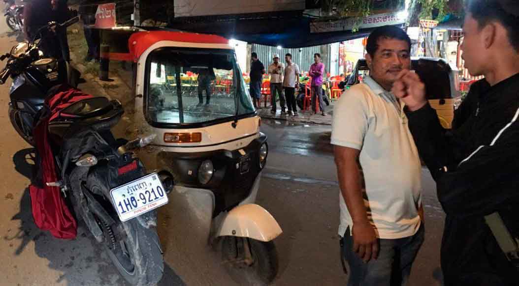 ប្រភពបានបន្តថា ភ្លាមនោះស្រាប់តែមានបុរសម្នាក់ស្លៀកពាក់ស៊ីវិលម្នាក់ (ជនដៃដល់) អះអាងថា ខ្លួនជាមន្ត្រីនគរបាលមួយរូបស្ថិតក្នុងស្ថានភាពស្រវឹងស្រាជោកជាំជិះម៉ូតូ១គ្រឿង ម៉ាក Yamaha M slaz ពាក់ស្លាកលេខភ្នំពេញ 1HO-9210 បានជិះម៉ូតូមកកាក់ពីមុខម៉ូតូកង់បីរបស់គាត់ រួចប្រើប្រាស់អំពើហិង្សាដោយវ៉ៃគាត់មួយដៃចំមុខក្រោមភ្នែកខាងឆ្វេង បណ្តាលឱ្យប៉ោងហើមខៀវ ភ្លាមនោះគាត់ក៏រត់ឱ្យគេជួយបង្កការភ្ញាក់ផ្អើលតែម្តង។