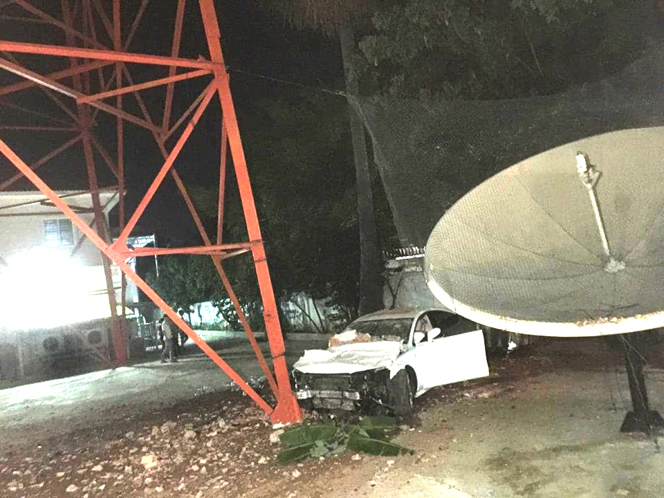លុះមកដល់ចំណុចកើតហេតុ ដែលជាចំណុចផ្លូវកោងអ្នកបើកបររថយន្តបួងចង្កូតបត់មិនទាន់ ក៏ធ្វើឱ្យជ្រុលល្បឿនទៅបុករបងអង់តែនស្ថានីយទូរទស្សន៍ជាតិពេញមួយទំហឹង បណ្តាលធ្លាយពីម្ខាងទៅ ម្ខាង ហើយរថយន្តបង្កបានរុលចូលទៅក្នុងផ្ទប់នឹងជើងជ្រែញបង្គោលអង់តែង ទើបទៅមុខលេងរួច។