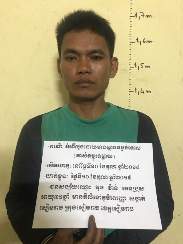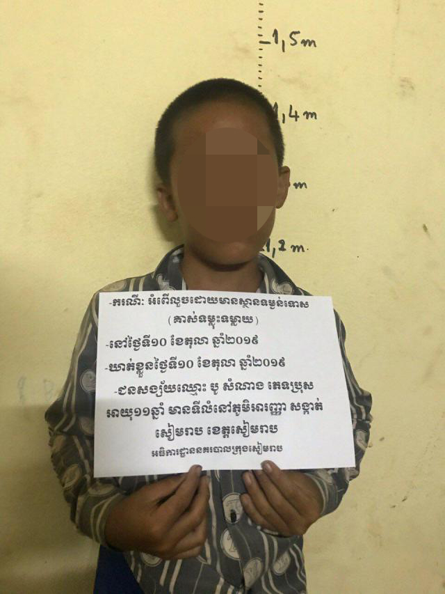 និងទី៣-ឈ្មោះបូ សំណាង ភេទប្រុស អាយុ១១ឆ្នាំ មុខរបរសិស្ស។ ជនទាំង៣នាក់ រស់នៅភូមិ អារញ្ញ សង្កាត់សៀមរាប ក្រុង/ខេត្តសៀមរាប។