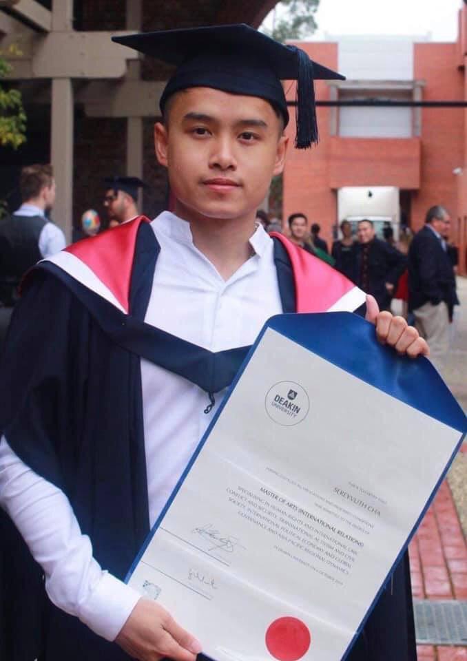 លោកចា រិទ្ធី ដែលជាអ្នកដឹកនាំកម្មវិធីប្រគំតន្រ្ដីល្បីឈ្មោះរបស់ទូរទស្សន៍ប៉ុស្ដិ៍អាស៊ីអាគ្នេយ៍នោះ បានបង្ហាញអារម្មណ៍រីករាយ និងមានមោទនភាពចំពោះកូនប្រុសរបស់លោក ដែលប្រកបទៅដោយគន្លងធម៌ ខិតខំរៀនសូត្រតាំងពីតូច រហូតពេលនេះសម្រេចបំណងធំបំពេញក្ដីស្រម៉ៃឲ្យក្រុមគ្រូសារ តាមរយៈការបញ្ចប់ការសិក្សាថ្នាក់អនុបណ្ឌិតផ្នែកទំនាក់ទំនងអន្ដរជាតិ ពីសាកលវិទ្យាល័យ DEAKIN UNIVERSITY ប្រទេសអូស្រា្ដលី កាលពីពេលថ្មីៗនេះ។