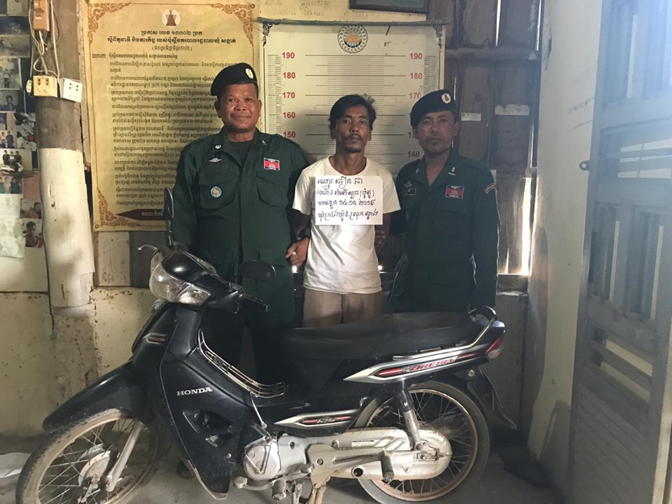 ខេត្តកណ្តាល ៖ បុរសម្នាក់ត្រូវបានសមត្ថកិច្ចនគរបាលចាប់ឃាត់ខ្លួន ខណៈដែលខ្ចីម៉ូតូគេ តែម្ចាស់គេមិនព្រមឱ្យ ហើយនៅតែបញ្ឆោះជិះចេញទៅនៅវេលាម៉ោង១២និង៣០នាទីរសៀល នៅថ្ងៃទី១៤ ខែតុលា ឆ្នាំ២០១៩ នៅចំណុចភូមិកំពង់ពោធិ៍ ឃុំក្រាំងយ៉ូវ ស្រុកស្អាង ខេត្តកណ្តាល ទើបប្តឹងប៉ូលិសឱ្យចាប់តែម្តង។