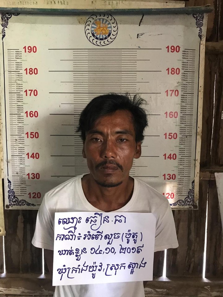 ប្រភពបន្តទៀតថា បន្ទាប់ពីទទួលបានព័ត៌មានខាងលើភ្លាម កម្លាំងប៉ុស្តិ៍នគរបាលរដ្ឋបាលក្រាំងយ៉ូវ សហការជាមួយកម្លាំងផ្នែកព្រហ្មទណ្ឌស្រុកស្អាង កម្លាំងប៉ុស្តិ៍នគរបាលរដ្ឋបាលស្អាងភ្នំ និងកម្លាំងប៉ុស្តិ៍នគរបាលរដ្ឋបាលព្រែកគយ ឃាត់ខ្លួនឈ្មោះធឿន ធា រួមនឹងវត្ថុតាងខាងលើនៅចំណុចភូមិពាមសាលា ឃុំស្អាងភ្នំ ស្រុកស្អាង ខេត្តកណ្តាល។