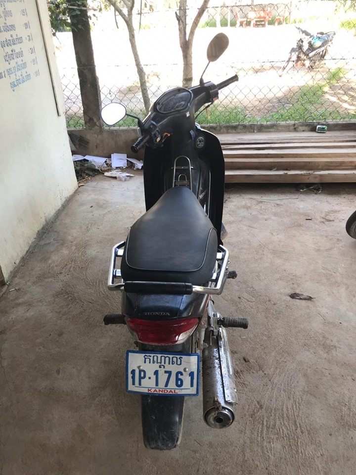 វត្ថុតាងដកហូតម៉ូតូចំនួន១គ្រឿង ម៉ាកហុងដាឌ្រីម ធុនសេ១២៥ ពណ៌ខ្មៅ ស៊េរី ឆ្នាំ២០១៥ ពាក់ស្លាកលេខ កណ្តាល 1P-1761។