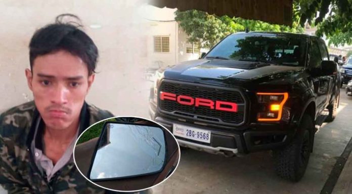 ប្រភពបានបន្តថា ស្រាប់តែបន្តិចមកក៏មានគេមកប្រាប់ថា មើលរថយន្តរបស់ខ្លួនតើមានបាត់សម្ភារអ្វីឬអត់ ? ទើបដឹងថាបាត់កញ្ចក់ម្ខាងផ្នែកខាងស្តាំ។ ភ្លាមនោះម្ចាស់រថយន្តបានបើករថយន្តដេញដល់រង្វង់ព្រហ្មមុខបួន ជនសង្ស័យក៏ផ្តួលម៉ូតូចោលរត់ តែត្រូវសមត្ថកិច្ចចាប់បានម្នាក់និងដកហូតកញ្ចក់រថយន្តនៅក្នុងស្បោងខ្មៅបានមកវិញ។