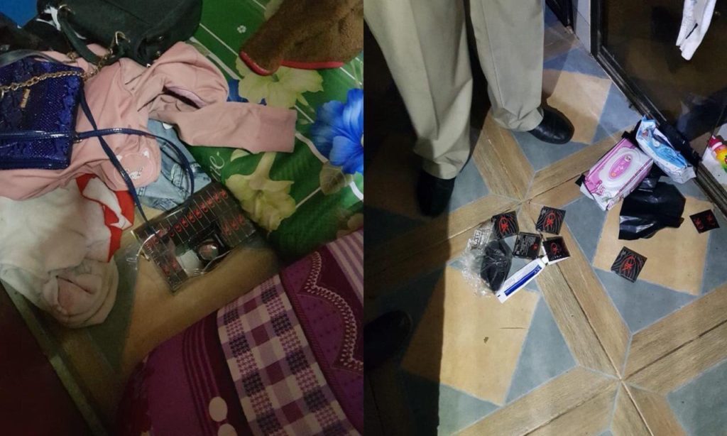 ចំពោះសម្ភារដកហូត រួមមាន ស្រោមអនាម័យប្រើរួច និងមិនទាន់ប្រើមួយចំនួនធំ និងសៀវភៅកត់ត្រាភ្ញៀវចេញចូលចំនួន២ក្បាល។