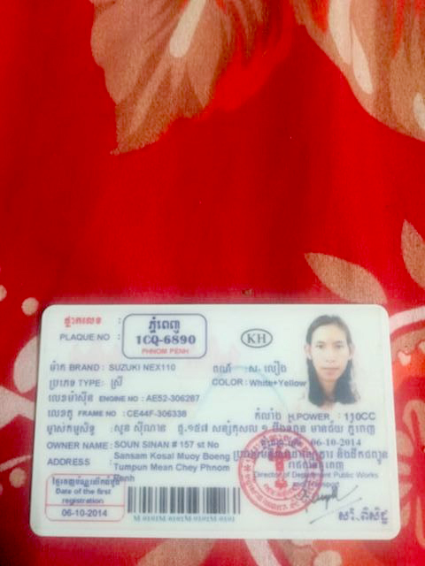 ចំណែកម៉ូតូដែលចោរលួចយកទៅនោះ ម៉ាកស៊ុយហ្ស៊ុយគីនិច ពណ៌លឿងលាយស ពាក់ស្លាកលេខ 1CQ-6890 ជាកម្មសិទ្ធិរបស់ឈ្មោះសុខ ស៊ីណាន មានលំនៅក្នុងភូមិសន្សំកុសល១ សង្កាត់បឹងទំពុន ខណ្ឌមានជ័យ។