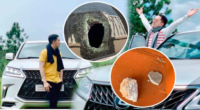 លោកពេជ្រ បន្តទៀតថា “នេះពិតជាសំណាងធំរបស់ខ្ញុំហើយ ដែលជនឆ្លៀតឱកាសមានគ្នា 5នាក់ ស្ទាក់ឡានខ្ញុំអោយឈប់ ដល់ខ្ញុំអត់ឈប់ពួកគេក៏គប់ឡានខ្ញុំតែម្តង ប៉ុន្តែខ្ញុំមិនឈប់នៅបន្តបើកទៅមុខរហូត .. ហើយក៏សំណាងដែលមិនចំកន្លែងខ្ញុំបើក ហើយត្រូវតែកញ្ចក់ចំហៀងខាងក្រោយតៃកុង ប្រសិនចំតួឡានវិញ គឺរឹតតែចប់ហ្មង…. សរុបមកចុងក្រោយដូរកញ្ចក់អស់100$ ប៉ុន្តែព្រលឹងហោះទៅសុីព្រលិតបាត់ហេីយ…..”។