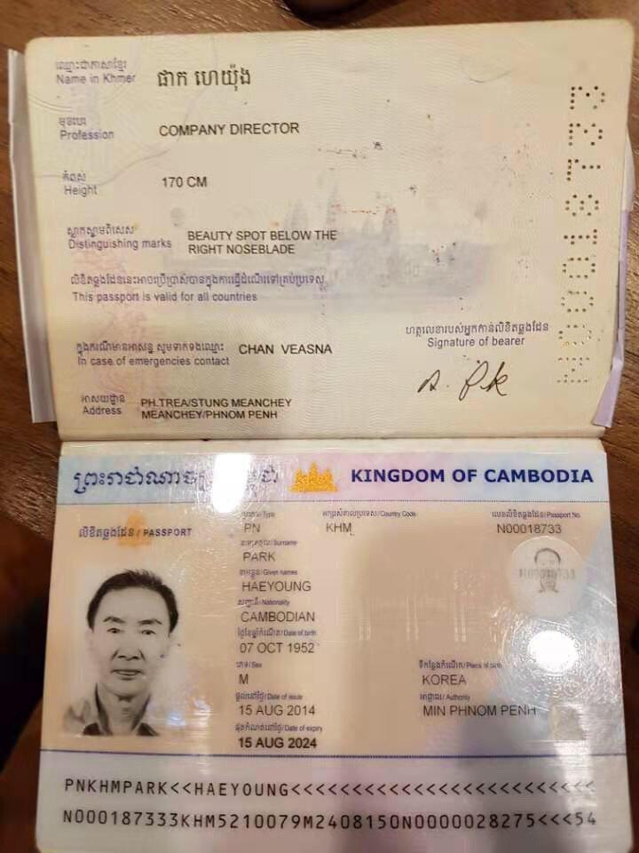 បុរសសង្ស័យដែលត្រូវសមត្ថកិច្ចចាប់ឃាត់ខ្លួនរូបនេះ មានឈ្មោះផាក ហេយ៉ុង អាយុ៦៧ឆ្នាំ ជាជនជាតិកូរ៉េ តែងមានសញ្ជាតិជាខ្មែរទៀតផង។