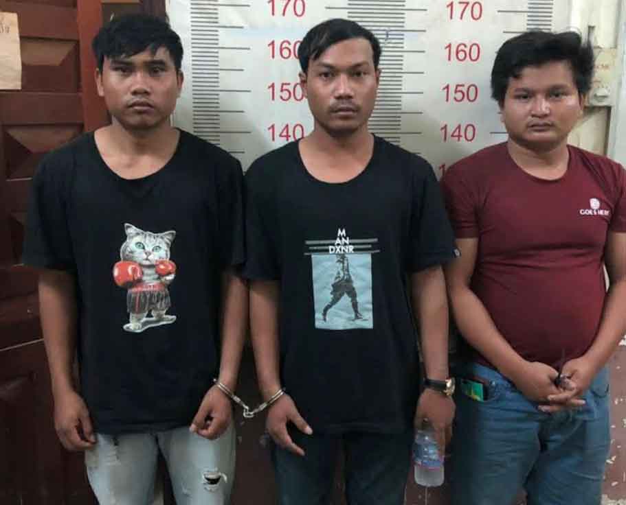 ជនសង្ស័យដែលឃាត់ខ្លួនទី១-ឈ្មោះវិន វី ភេទប្រុស អាយុ២៤ឆ្នាំ មុខរបរបើកបររថយន្ត ទី២-ឈ្មោះរស់ សារុំ ភេទប្រុស អាយុ២២ឆ្នាំ មុខរបរបើកបររថយន្ត និងទី៣-ឈ្មោះណូ មុន្នី ភេទប្រុស អាយុ២៤ឆ្នាំ មុខរបរព្រូរថយន្ត។