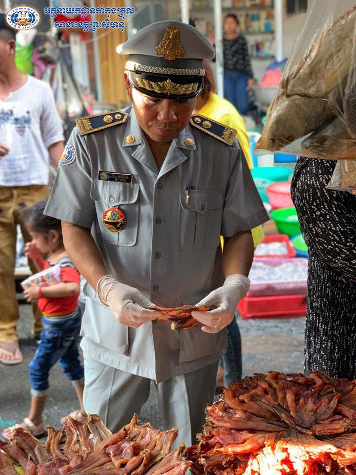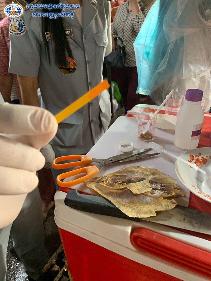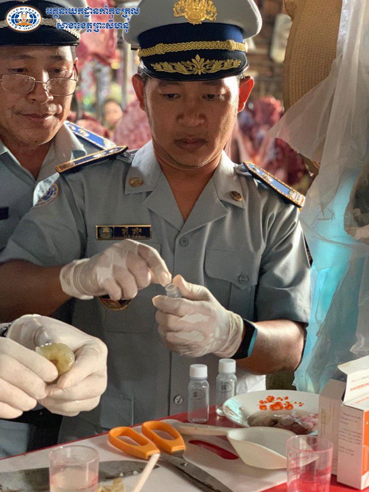 នៅក្នុងសកម្មភាពចុះត្រួតពិនិត្យ មន្ត្រីជំនាញបានដកយកគំរូមួយចំនួនមកធ្វើតេស្តបឋម រួមមាន បង្គារ មឹកស្រស់ ងៀតបបែល ត្រីប្រឡាក់ ឈាមជ្រូក ខ្ញីហាន់ ជ្រក់ស្ពៃ សណ្តែកបណ្តុះ តៅហ៊ូ និងប្រេង ដើម្បីរកសារធាតុគីមីហាមឃាត់ដែលអាចធ្វើឱ្យប៉ះពាល់ដល់សុខភាពប្រជាពលរដ្ឋ។