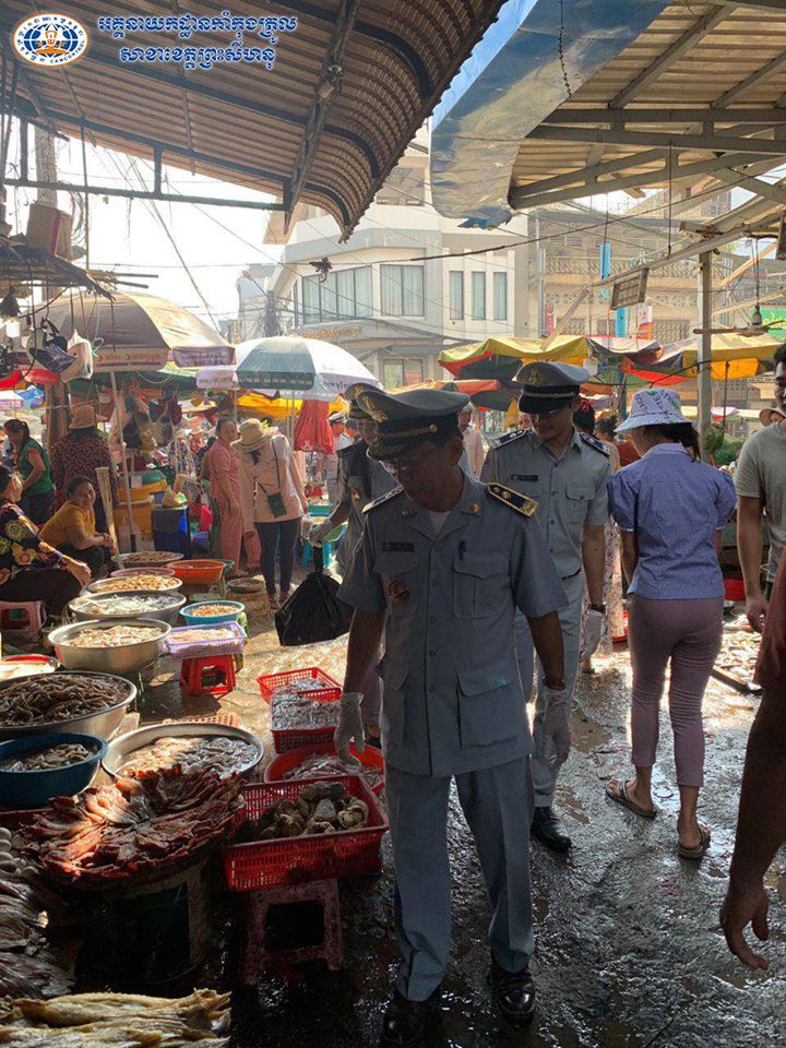 ខេត្តព្រះសីហនុ៖ កាលពីថ្ងៃទី១៨ ខែធ្នូ ឆ្នាំ២០១៩ មន្រ្តីសាខាកាំកុងត្រូលខេត្តព្រះសីហនុ ដោយមានការសហការពី មន្ត្រីមន្ទីរពាណិជ្ជកម្មខេត្ត និងអាជ្ញាធរដែនដី បានបន្តចុះផ្សព្វផ្សាយអំពីគុណភាព សុវត្ថិភាពម្ហូបអាហារ ត្រួតពិនិត្យផលិតផលម្ហូបអាហារ និងទំនិញវេចខ្ចប់ស្រាប់នៅតាមផ្សារទំនើបនិងផ្សារពាណិជ្ជកម្មក្នុងក្រុងព្រះសីហនុ ខេត្តព្រះសីហនុ។