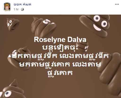 យ៉ាងណា ការបង្ហោះសារនេះ ត្រូវបានលោកព្រីង ច័ន្ទបុត្រ បង្ហោះសារតបវិញថា “Roselyne Dalva បន្តទៀតចុះ មកតាមផ្លូវទឹក លេងតាមផ្លូវទឹក មកតាមផ្លូវគោក លេងតាមផ្លូវគោក”។