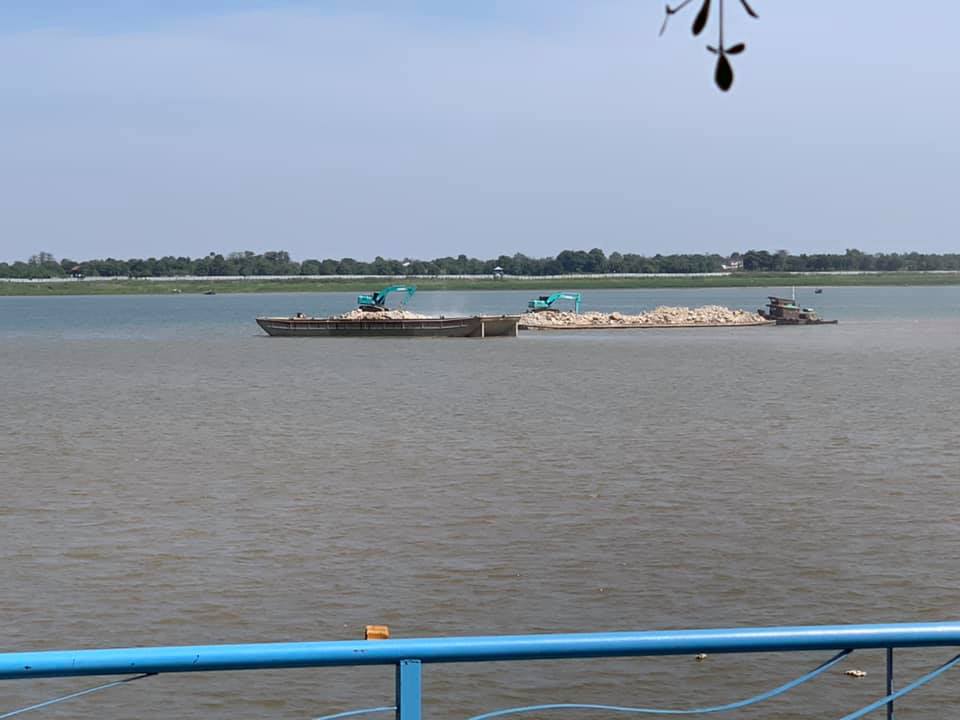 យោងតាមគណនីហ្វេសប៊ុកឈ្មោះ ”Theam Bunthoeurn” នៅថ្ងៃទី៣០ ខែធ្នូ ឆ្នាំ២០១៩ បានសរសេរភ្ជាប់ជាមួយវីដេអូស្តីពីសកម្មភាពស្រឡាងមួយកាយថ្មទម្លាក់កណ្តាលទន្លេមុខព្រះបរមរាជវាំង ថា “ខ្ញុំអត់យល់ថា ពួកគាត់កំពុងធ្វើអ្វីទេបានជាយកថ្មមកទម្លាក់ក្នុងទន្លេបែបនេះ។ សូមអាជ្ញាធរមូលដ្ឋានមើលផង។ ទីតាំងក្រោយហាងម្លប់ស្តៅបឹងស្នោ។ គ្រាន់តែឆ្ងល់នឹងមិនយល់។ សូមជួយស៊ែរឱ្យបានដល់មន្ត្រីដែលពាក់ព័ន្ធផង។ អរគុណ”។
