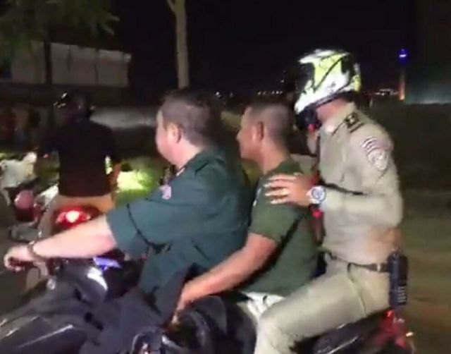 ភ្នំពេញ ៖ បុរសម្នាក់ស្លៀកពាក់ស៊ីវិល (ពាក់អាវយឺតកងកម្លាំងពីក្នុង) បានអះអាងថាខ្លួនជាសមត្ថកិច្ចខាងពន្លត់អគ្គិភ័យ តែបែរជាព្យាយាមចង់វាយខ្នោះយុវជនម្នាក់ ដោយចោទប្រកាន់ថា យុវជនរូបនោះមានលាក់ទុកថ្នាំញៀនបង្កឱ្យមានការភ្ញាក់ផ្អើលពេញផ្លូវបឹងកក់ និងត្រូវសមត្ថកិច្ចចុះអន្តរាគមន៍ឃាត់ខ្លួនបុរសដែលអួតខ្លួនថាជាប៉ូលិសអគ្គិភ័យរូបនោះ នាំយកទៅសួរ។