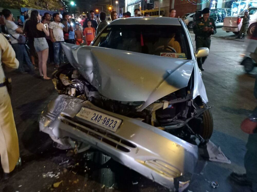 ភ្លាមៗនោះ រថយន្តបង្កមិនបានឈប់ទ្បើយ ព្យាយាមបើករត់គេចទៅដល់ចំណុចកើតហេតុ ក៏ជ្រុលទៅបុកចំគូទរថយន្តកាមរីហាយប៊្រីត ពណ៌ស ពាក់ស្លាកលេខភ្នំពេញ 2BA-4272 ដែលបើកបរដោយនារីរូបស្រស់ម្នាក់បណ្តាលឱ្យខ្ទេចគូទខាងក្រោយធ្លាក់កាង ហើយរថយន្តបង្កវិញរងការខូចខាតខ្ទេចអស់មួយកំណាត់ខាងមុខ។
