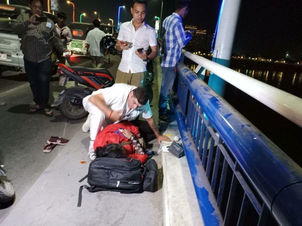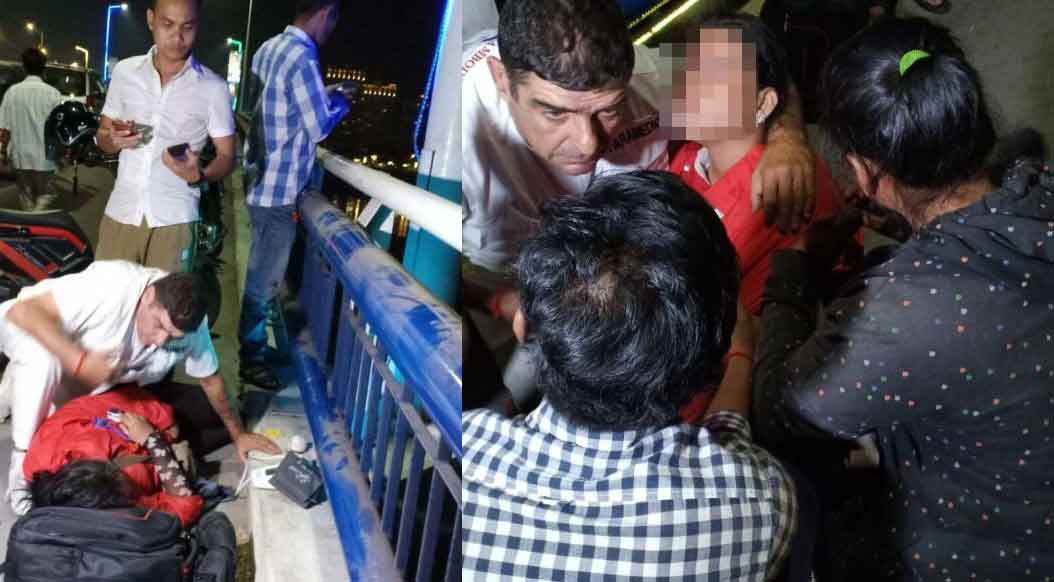 លុះមកដល់ពាក់កណ្តាលស្ពានត្រង់ចំណុចកើតហេតុ ស្ត្រីរូបនោះក៏បានឈប់ម៉ូតូរួចចុះមកឈរតោងបង្កាន់ដៃស្ពាន ស្រែកទ្រហោយំ ហើយប៉ុនប៉ងលោតពីលើស្ពានសម្លាប់ខ្លួន ធ្វើឱ្យភ្ញាក់ផ្អើលដល់ប្រជាពលរដ្ឋធ្វើដំណើរឆ្លងកាត់កន្លែងកើតហេតុចូលទៅជួយចាប់ឃាត់ទាន់ពេលវេលា។