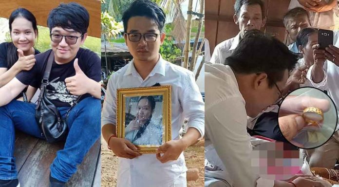 បុរសអភ័ព្វស្នេហ៍ខាងលើ បានឱ្យដឹងបន្តថា រូបគេនិងនារីរងគ្រោះបានស្រឡាញ់គ្នាស្អិតល្មួត រហូតកំណត់ថ្ងៃភ្ជាប់ពាក្យនៅថ្ងៃទី៣១ ខែមករា ឆ្នាំ២០២០ តែជាអកុសលបែរជានារីរងគ្រោះបានស្លាប់ដោយគ្រោះថ្នាក់ចរាចរណ៍ ធ្វើឱ្យរូបគេសោកស្តាយស្រណោះអាឡោះអាល័យនារីជាសង្សារជាពន់ពេក តែយ៉ាងណាដើម្បីបំពេញបំណងចុងក្រោយរបស់នារីជាទីស្រឡាញ់ រូបគេបានសម្រេចបំពាកចិញ្ចៀនភ្ជាប់ពាក្យជាមួយសពគូដណ្តឹងនៅថ្ងៃបុណ្យសព៧ថ្ងៃរបស់នាង នៅថ្ងៃទី៣១ ខែមករា ឆ្នាំ ២០២០ ដែលចំនឹងថ្ងៃកំណត់ភ្ជាប់ពាក្យរបស់ពួកគេនោះតែម្តង។