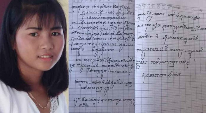 ភ្នំពេញ ៖ យុវតីរូបស្រស់ម្នាក់មិនដឹងជាមានវិបត្តិផ្លូវចិត្តរឿងអ្វី ក៏ស្រាប់តែវេចបង្វេចចុះចេញពីផ្ទះបាត់ដោយបន្សល់ទុកលិខិតបណ្តាំចំនួន២ច្បាប់ សរសេររៀបរាប់ពីកំហុសរបស់ខ្លួននិងបង្ហាញពីការសុំទោសរាល់ទង្វើដែលខ្លួនធ្វើខុសឆ្គងនាំឱ្យអាប់ឱនដល់ឪពុកម្តាយ។