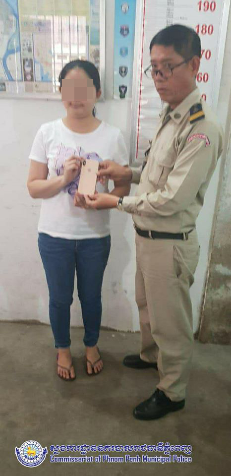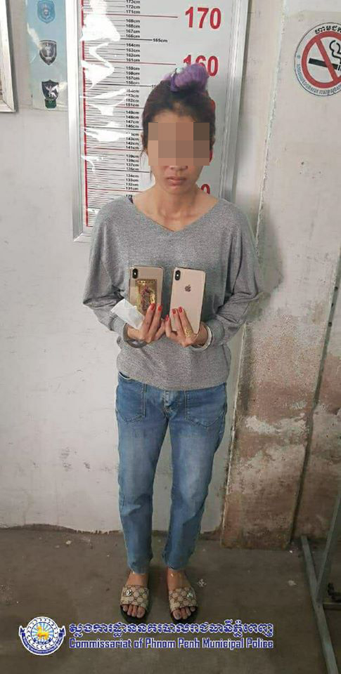 ភ្នំពេញ ៖ នារីបម្រើការក្នុងខារ៉ាអូខេម្នាក់ដើរទិញខោអាវក្នុងផ្សារ ឃើញឱកាសល្អលួចយកទូរស័ព្ទ iPhone XS MAX ស្រាប់តែម្ចាស់ឃើញទាន់ឃាត់ខ្លួនប្រគល់ឱ្យសមត្ថកិច្ចចាត់ការតាមច្បាប់។