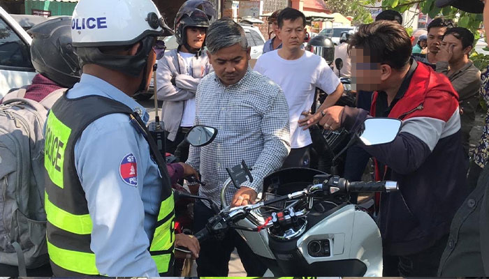 ស្រែកចោទប៉ូលិសថា​ “ចោរ” ពេលដឹកមកផាកពិន័យ ដោយសារជិះម៉ូតូបិទតែមរញ៉េរញ៉ៃ