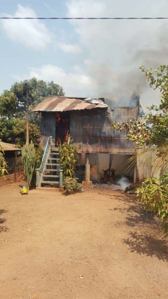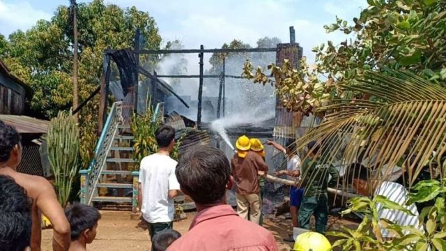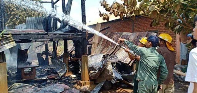 ខេត្តកំពង់ចាម ៖ ស្ត្រីម្នាក់បានចេញទៅធ្វើការឆ្ងាយផ្ទះដោយទុកឱ្យកូនស្រីនៅចាំផ្ទះតែម្នាក់ឯង ស្រាប់តែអកុសលកើតមានករណីទុស្សេខ្សែភ្លើង បង្កជាអគ្គិភ័យឆាបឆេះផ្ទះអស់ទាំងស្រុង។
