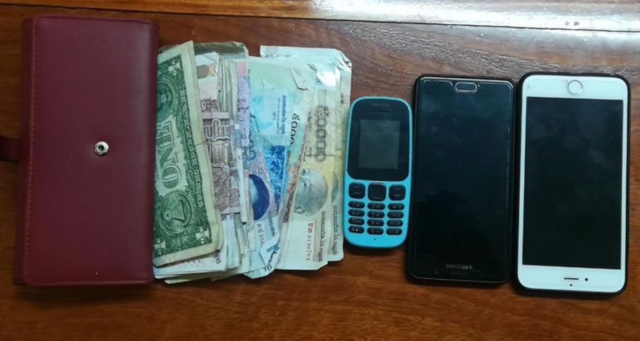 ដោយឡែក វត្ថុតាងដកហូតបាន រួមមាន ម៉ូតូមួយគ្រឿងពណ៌ខ្មៅ ពាក់ស្លាកលេខភ្នំពេញ 1CN-5145លុយរៀលចំនួន៥៩៩,៨០០រៀល, ទូរស័ព្ទចំនួន៣គ្រឿង, កាបូបដៃពណ៌ក្រហមក្រមៅចំនួន១។