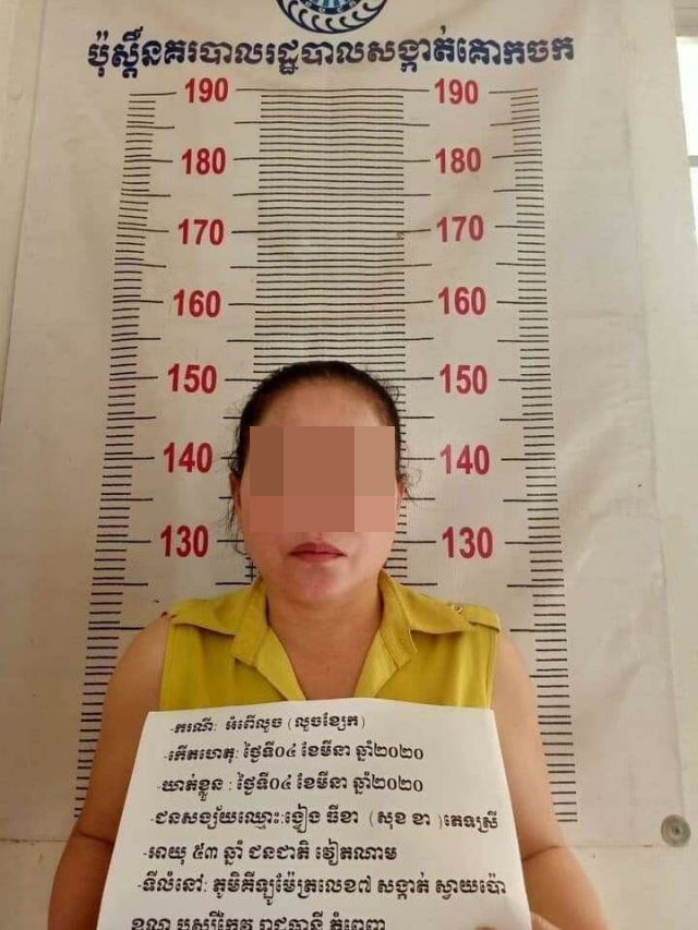 ខេត្តសៀមរាប ៖ កម្លាំងប៉ុស្តិ៍នគរបាលរដ្ឋបាលគោកចក បានចាប់ឃាត់ខ្លួនជនសង្ស័យម្នាក់ឈ្មោះង្វៀង ធីខា ហៅសុខខា ភេទស្រី អាយុ៥៣ឆ្នាំ ជនជាតិវៀតណាម រស់នៅភូមិគីឡូម៉ែត្រលេខ៧ សង្កាត់ស្វាយប៉ាក ខណ្ឌឫស្សីកែវ រាជធានីភ្នំពេញ មុខរបរលក់ត្រី ពាក់ព័ន្ធនឹងករណីអំពើលួច (បន្លំលួចខ្សែកមាស) ។