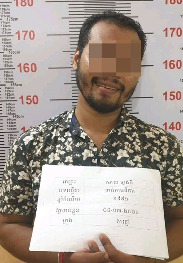 ប្រតិបត្តិការចាប់ខ្លួនជនសង្ស័យខាងលើ ធ្វើឡើងកាលពីវេលាម៉ោង៧និង៣០នាទីយប់ ថ្ងៃទី០៨ ខែមីនា ឆ្នាំ២០២០ នៅចំណុចតាមផ្លូវលំ ស្ថិតក្នុងភូមិក្រពើហារកើត សង្កាត់ព្រែកឬស្សី ក្រុងតាខ្មៅ។