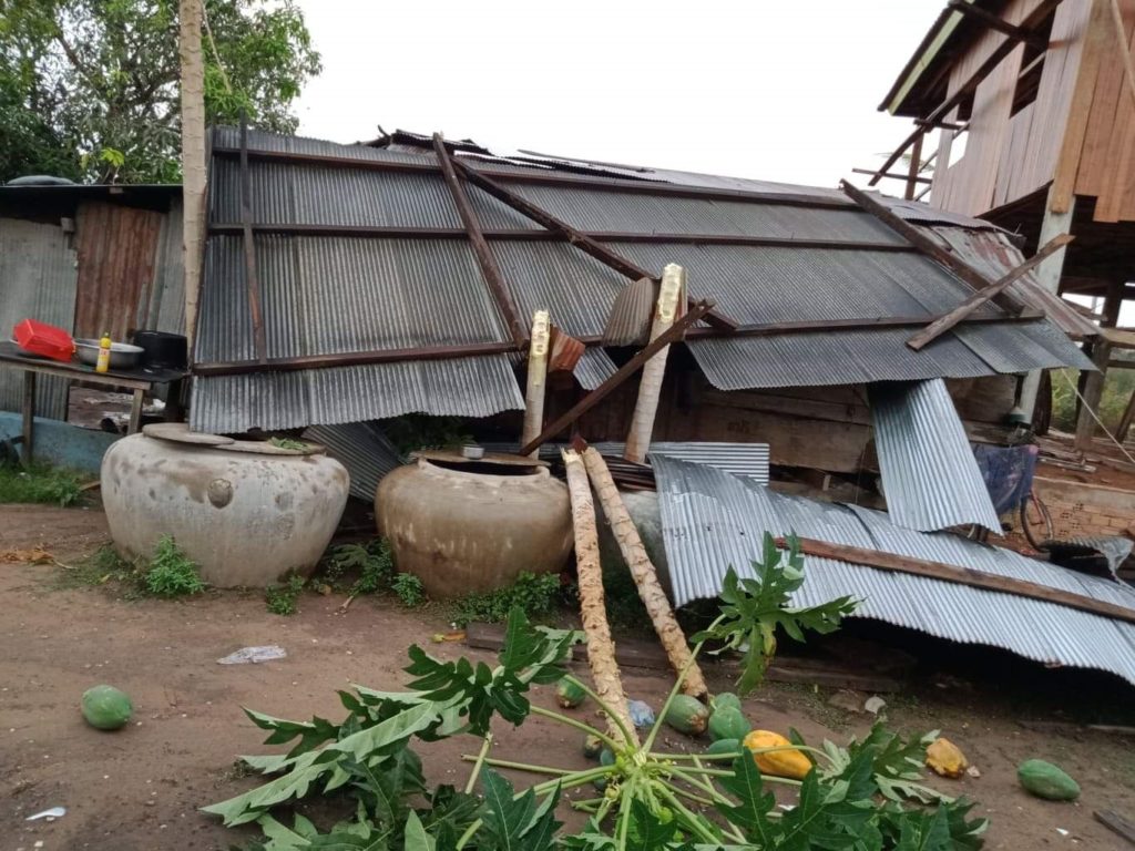 ខេត្តពោធិ៍សាត់ ៖ លំនៅដ្ឋានរបស់ស្ត្រីមេម៉ាយម្នាក់ត្រូវបានទទួលរងការខូចខាតយ៉ាងដំណំ ដោយសារឥទ្ធិពលគ្រោះធម្មជាតិខ្យល់កន្ត្រាក់ ដែលបានបោកបក់បំផ្លាញដំបូលផ្ទះស្ត្រីរងគ្រោះ បង្កឱ្យរងការខូចខាតអស់ទាំងស្រុង។