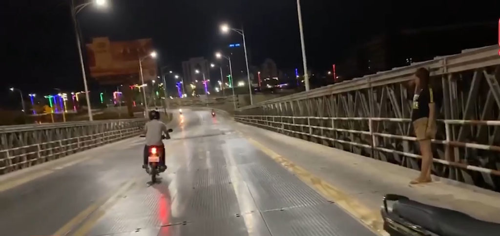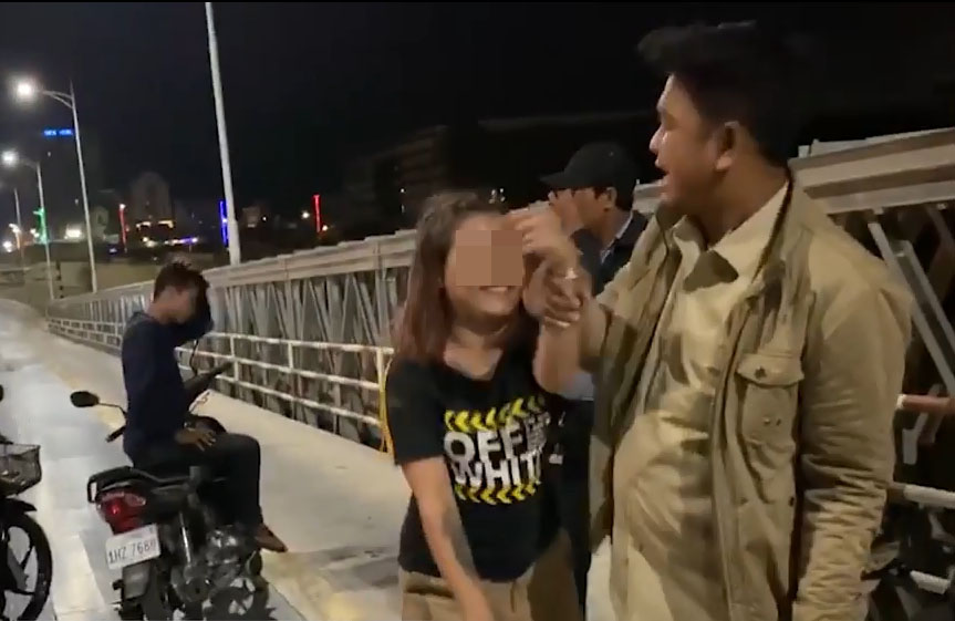 ចំណែកនារីខាងលើឈររេរាទាមទារអង្គុយលេងលើស្ពានតែម្នាក់ឯង ប៉ុន្តែត្រូវបានក្រុមសន្តិសុខមិនទុកចិត្តក៏ចាប់អូសដៃឱ្យឡើងជិះម៉ូតូ រួចដឹកចុះពីលើមកដាក់នៅក្នុងម៉ាតក្នុងស្ថានីយប្រេងមួយកន្លែង ដើម្បីឱ្យសម្រួលអារម្មណ៍ មុននឹងត្រឡប់ទៅផ្ទះវិញ។/