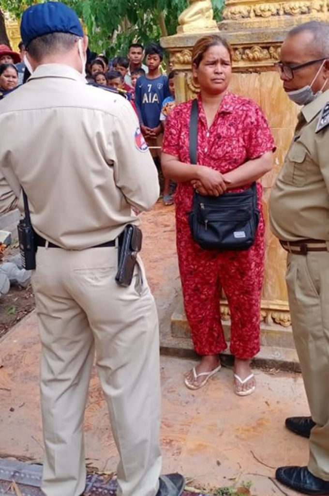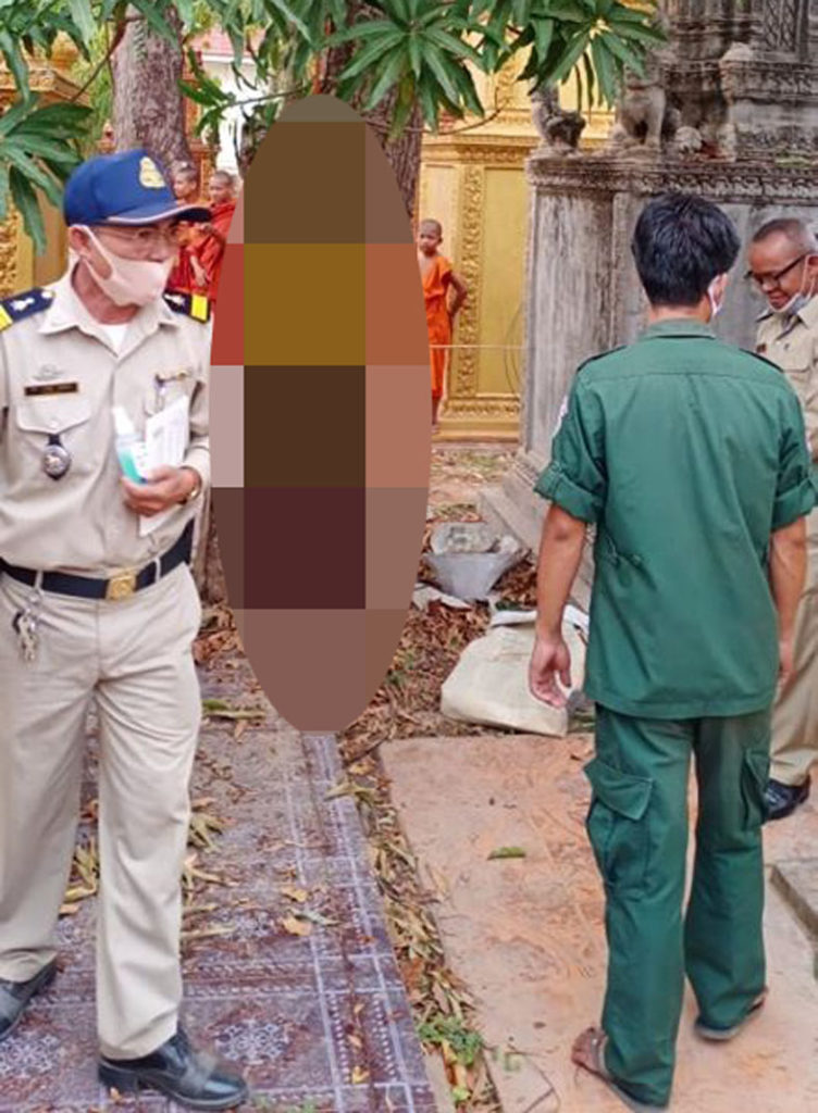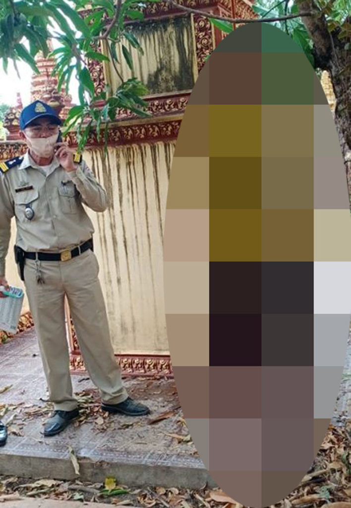 ស្ត្រីជាប្រពន្ធជនរងគ្រោះ បន្ថែមថា លុះពេលបាត់ប្តីយូរពេក ទើបគាត់បានដើររករហូតដល់ក្នុងវត្តហប់ ទីតាំងកើតហេតុខាងលើ ស្រាប់តែប្រទះឃើញប្តីរបស់គាត់បានបានចងកនឹងស្បង់លោក ក្រោមដើមស្វាយនៅជាប់ចេតីយខាងកើតព្រះវិហារវត្តហប់ ស្លាប់បាត់ទៅហើយ ទើបគាត់បានស្រែកឆោឡោឡើងផ្អើលដល់ព្រះសង្ឃ និងប្រជាពលរដ្ឋរាយការណ៍ប្រាប់សមត្ថកិច្ចចុះពិនិត្យភ្លាមៗ។