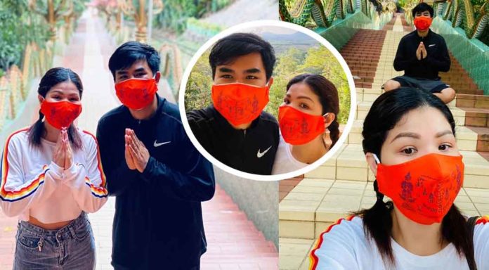 មាស សុខសោភា បានបង្ហាញរូបភាពកៀកកើយជាមួយស្វាមី ហើយថ្លែងសារថា ”ជូនអ្នកជំងឺមកស្រូបខ្យល់អាកាស សូមឲ្យបងមានសុខភាពប្រសើរឡើង”។