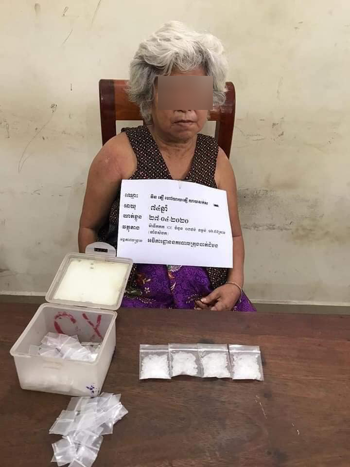 បាត់ដំបង ៖ ស្ត្រីចំណាស់ម្នាក់ ជាមេជួញដូរថ្នាំញៀនដ៏កក្រើកប្រចាំក្រុងបាត់ដំបង ត្រូវបានសមត្ថកិច្ចធ្ចើការឃាត់ខ្លួន ឆែកឆេររកឃើញម៉ាទឹកកកមួយចំនួន រួចក៏បាននាំខ្លួនមកសាកសួរនៅប៉ុស្តិ៍ប៉ូលិសតែម្តង។ ហេតុការណ៍នេះបានកើតឡើងកាលពីវេលាម៉ោង១៥និង៣៥នាទី ថ្ងៃទី ២៧ ខែមេសា ឆ្នាំ២០២០ នៅចំណុចក្រុមទី៣០ ភូមិកំពង់ក្របី សង្កាត់ស្វាយប៉ោ ក្រុងបាត់ដំបង ខេត្តបាត់ដំបង។