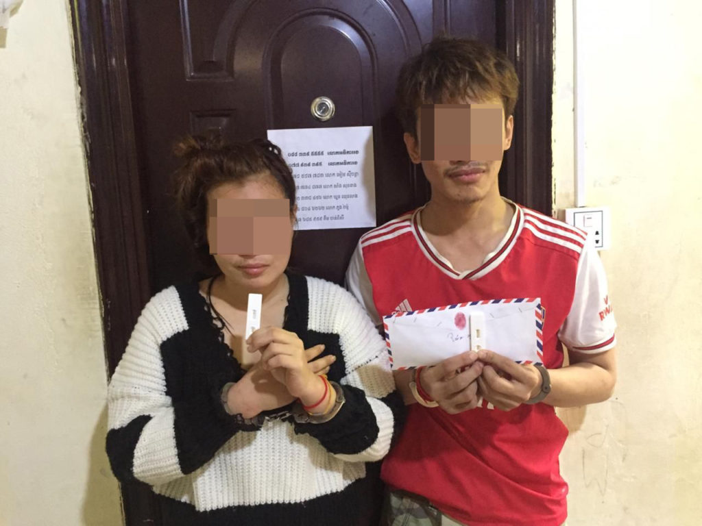 ប្រភពដដែលបន្តថា នៅមុនពេលកើតហេតុ ជនសង្ស័យទាំងពីរនាក់ខាងលើបាននាំគ្នាចូលទៅដេកក្នុងផ្ទះសំណាក់ខាងលើ លុះព្រឹកឡើងគ្មានលុយឱ្យ ទើបម្ចាស់ផ្ទះសំណាក់បានរាយការណ៍មកកម្លាំងប៉ុស្តិ៍ ចុះទៅអន្តរាគមន៍ ហើយបានត្រួតពិនិត្យឆែកឆេររកឃើញថ្នាំញៀនចំនួន១កញ្ចប់ ទើបឃាត់ខ្លួនពួកគេតែម្តង។