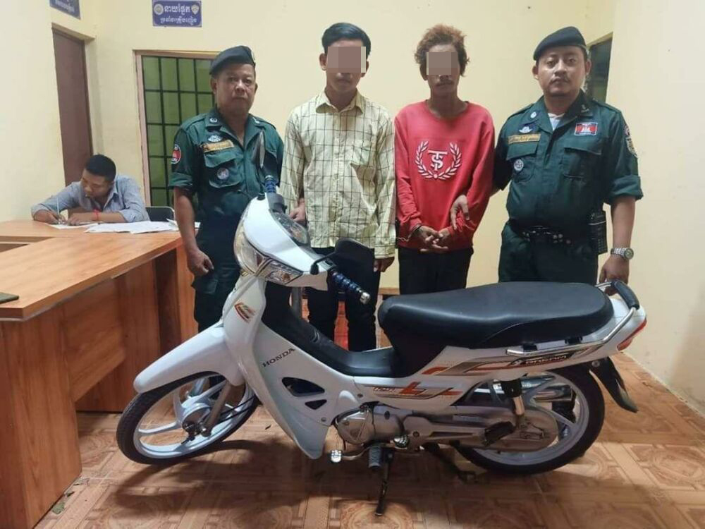 ភ្នំពេញ ៖ ជនសង្ស័យ២នាក់បានធ្វើសកម្មភាពវាយប្លន់ម៉ូតូពីបុរសអ្នករត់ម៉ូតូឌុបម្នាក់បានសម្រេចកាលពីល្ងាចថ្ងៃទី០៦ ខែឧសភា ឆ្នាំ២០២០ នៅចំណុចវាលស្រែ ផ្លូវលំ ក្នុងភូមិអង្គរជ័យ សង្កាត់ស្នោ ខណ្ឌកំបូល រាជធានីភ្នំពេញ ហើយព្យាយាមគេចខ្លួនបាត់រហូតមកដល់វេលាម៉ោង៥និង១០នាទីល្ងាច ថ្ងៃទី២៩ ខែឧសភា ឆ្នាំ២០២០ ទើបកម្លាំងនៃអធិការដ្ឋាននគរបាលខណ្ឌកំបូល ស្រាវជ្រាវរហូតឈានទៅឃាត់ខ្លួនជនសង្ស័យជាបក្ខពួកចំនួន២នាក់ជាបន្តបន្ទាប់។