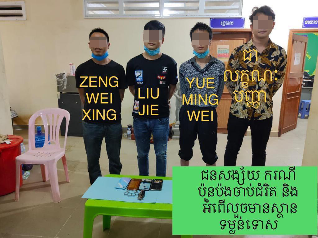 ជនសង្ស័យទាំង៤នាក់ ដែលត្រូវសមត្ថកិច្ចចាប់ឃាត់ខ្លួន រួមមាន ៖