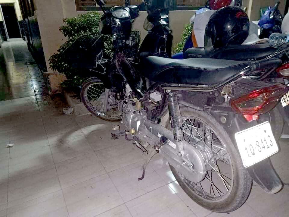 វត្ថុតាងដកហូតបានម៉ូតូ១គ្រឿង ម៉ាកហុងដា សេ១២៥ ពណ៌ខ្មៅ ស៊េរីឆ្នាំ២០២០ ពាក់ស្លាកលេខ កំពង់ស្ពឺ ១ឈ-៨៤១៣ មានលេខតួ និងលេខម៉ាស៊ីន ៥៧១៥៥៨៧។