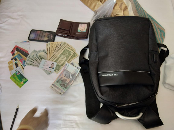 នៅកន្លែងកើតហេតុមានសម្ភារសព លុយដុល្លារចំនួន៥៨១ដុល្លារ លុយខ្មែរចំនួន១៨៩០០រៀល ទូរស័ព្ទអាយហ្វូន (iPhone 11Pro) ចំនួន១គ្រឿង អត្តសញ្ញាណប័ណ្ណជនជាតិចិនចំនួន០១សន្លឹក កាតផ្សេងៗចំនួន១៦សន្លឹក និងខោអាវមួយចំនួនបានប្រគល់ឱ្យការិយាល័យស៊ើបអង្កេត និងអនុវត្តន៍នីតិវិធីផែនការងារអន្តោប្រវេសន៍ ដើម្បីរក្សាទុក។