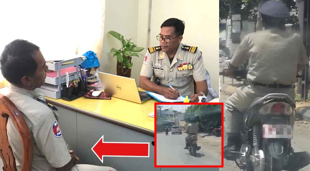 មន្ត្រីប៉ូលិសជិះម៉ូតូមិនពាក់មួកសុវត្ថិភាព សារភាពទទួលកំហុស
